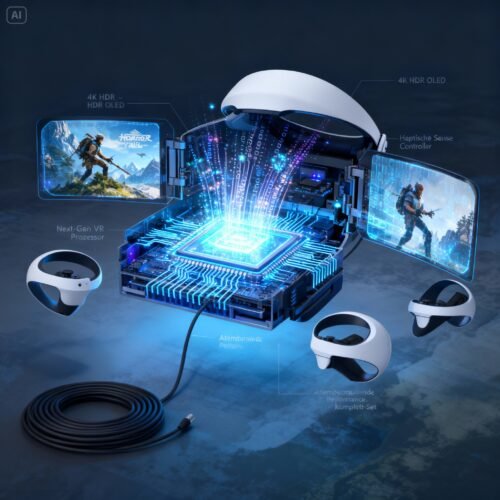 Stell dir ein super-intelligentes Virtual-Reality-Gehirn vor: den Next-Gen VR-Processor. Dieser leistungsstarke Motor ist so schnell, dass die virtuelle Welt reagiert, bevor du den Befehl vollendet hast. Spiele wirken wahrhaftig wie die Realität, denn das System rendert Charaktere und Landschaften mit 4K HDR und atemberaubenden Farben – ohne jemals zu ruckeln oder unscharf zu werden.