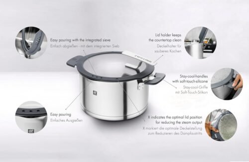 Mit seinem stilvollen Design in Silber-Schwarz, den innovativen Funktionen und der langlebigen Qualität vereint das ZWILLING Simplify Topfset alles, was Sie für müheloses, sicheres und effizientes Kochen benötigen.